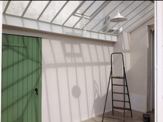 La petite porte du salon a été remplacée par une grande baie coulissante avec un accès direct à la nouvelle terrasse.